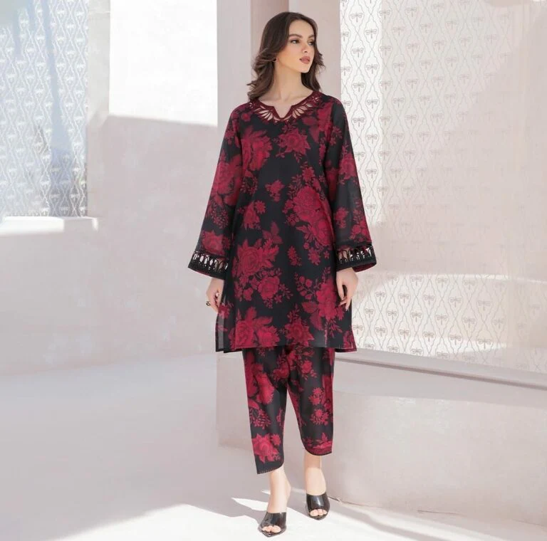 Elegance meets artistry in this dress. With an organza embroidered neck patch, captivating digital prints on the front, back, and trousers, and a digital printed organza dupatta with chifly work.