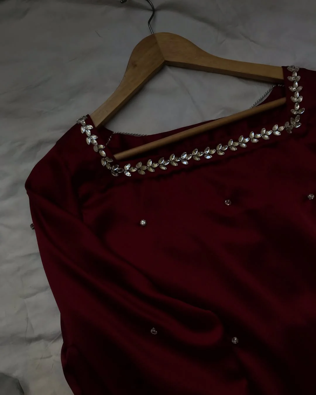 Handcrafted on luxurious chermouse silk, the UNICORN dress exudes elegance and sophistication. The intricate embroidery adds a touch of glamour, making this dress perfect for any special occasion. Made with attention to detail and expert craftsmanship, it showcases the beauty and versatility of handmade clothing.